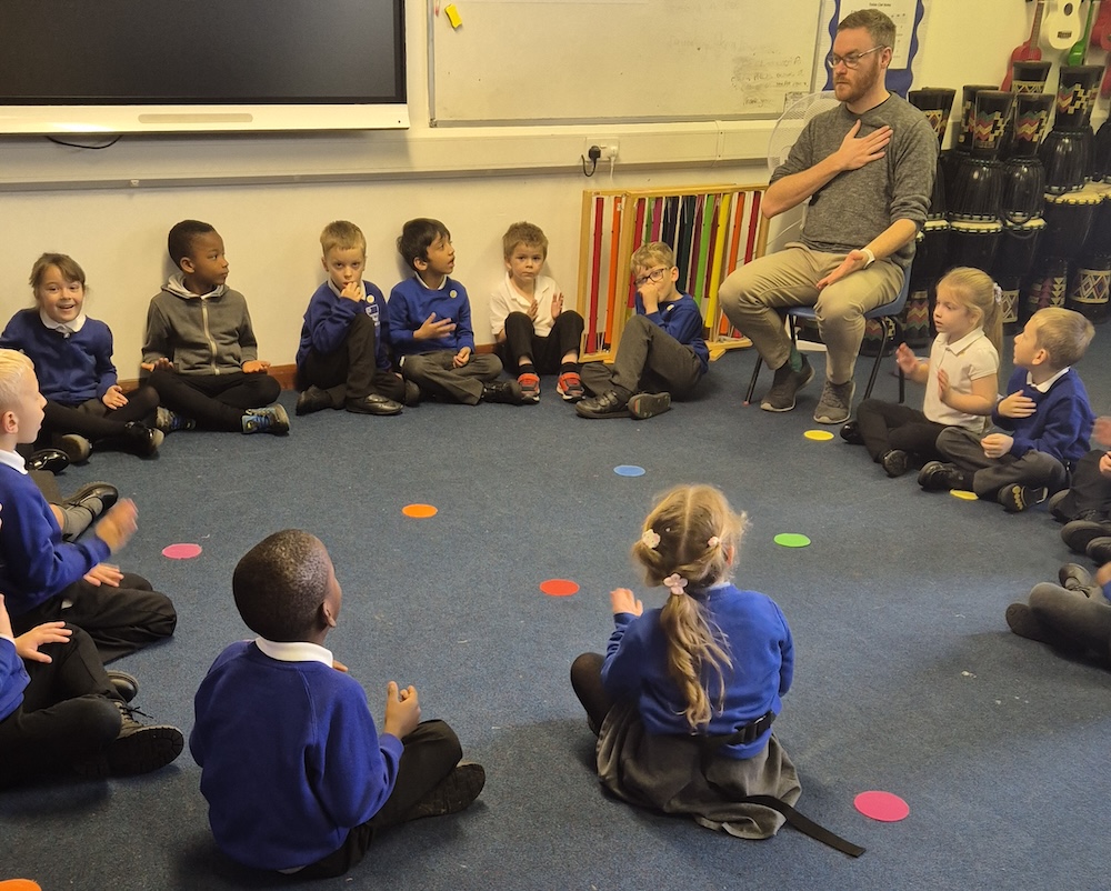 Year 1 pupils were thoroughly enjoying their music lesson where they learned a spooky Halloween version of “Row, Row, Row Your Boat”.